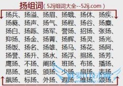 组词大全详解[扬组词]如:扬兵、扬溢、扬眉、扬蛾、扬休、扬疾、扬蕤、扬声、扬气、扬程、扬谷、扬麋、扬白、扬跞、扬军、誉扬、招扬、张扬、抑扬、扬金、扬菁、扬辉...