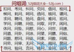 组词大全详解[问组词]如:扣问、考问、纠问、究问、借问、检问、候问、耗问、呵问、函问、核问、谴问、求问、聘问、抢问、盘问、难问、巡问、学问、问聘、问信、问取...