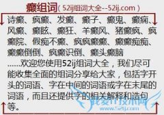 组词大全详解[癫组词]如:诗癫、疯癫、发癫、癫子、癫鬼、癫痫、风癫、癫眩、癫狂、羊癫风、猪癫疯、疯癫院、假痴不癫、疯疯癫癫、癫癫痴痴、癫癫倒倒、疯癫识倒、癫...