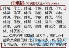 组词大全详解[俳组词]如:俳嬉、俳长、俳倡、俳偶、俳调、俳句、俳谑、俳文、俳语、俳丽、俳巧、俳体、俳说、俳回、俳儿、俳歌、俳优、俳笑、俳谐、俳诙、俳赋、诙俳...