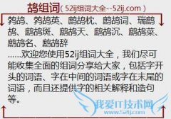 组词大全详解[鸪组词]如:鹁鸪、鹁鸪英、鹧鸪枕、鹧鸪词、瑞鹧鸪、鹧鸪斑、鹧鸪天、鹧鸪沉、鹧鸪菜、鹧鸪名、鹧鸪辞 另外还讲解鸪的组词、拼音、繁体字、解释相关资...