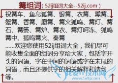 组词大全详解[篝组词]如:祝篝车、鱼帛狐篝、银篝、衣篝、熏篝、蟹篝、香篝、麝篝、篝火狐鸣、篝灯、篝石、篝篓、篝炉、篝衣、篝灯呵冻、狐鸣篝中、狐鸣篝火、秦篝 ...