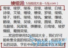 组词大全详解[绫组词]如:鸾绫、绫罗、绫券、宫绫、裱绫、白绫、诗绫、文绫、缯绫、缭绫、罗绫、绫绢、绫子、绫机、绫绮、绫纨、窠绫、缣绫、鹤绫、黄绫、吴绫、砑绫...