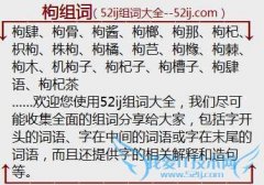 组词大全详解[枸组词]如:枸肆、枸骨、枸酱、枸榔、枸那、枸杞、枳枸、株枸、枸橘、枸芑、枸橼、枸棘、枸木、机枸子、枸杞子、枸槽子、枸肆语、枸杞茶 另外还讲解枸...