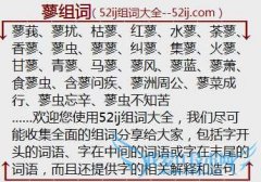 组词大全详解[蔺组词]如:慕蔺、马蔺、蔺生、蔺子、廉蔺、蔺石、蔺相如、马蔺子、久怀慕蔺 另外还讲解蔺的组词、拼音、繁体字、解释相关资料及发散思维组词等。...