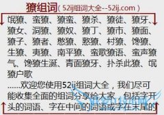组词大全详解[獠组词]如:氓獠、蛮獠、獠蛮、獠杀、獠徒、獠牙、獠女、洞獠、獠奴、獠丁、獠市、獠面、獠子、獠者、憨獠、憝獠、村獠、馋獠、生獠、夷獠、南平獠、蛮...