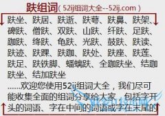 组词大全详解[趺组词]如:趺坐、趺居、趺逝、趺萼、趺鼻、趺架、碑趺、僧趺、双趺、山趺、纤趺、足趺、跏趺、绛趺、龟趺、光趺、鼓趺、趺读、趺迹、趺踝、趺跏、趺处...