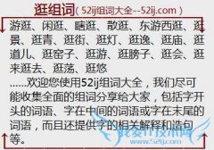 组词大全详解[逛组词]如:游逛、闲逛、瞎逛、散逛、东游西逛、逛景、逛青、逛街、逛灯、逛逸、逛庙、逛道儿、逛窑子、逛游、逛膀子、逛会、逛来逛去、逛荡、逛悠 另...