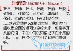 组词大全详解[硅组词]如:硅谷、硅肺、硅化、硅酸、硅油、硅胶、硅钢片、硅酸盐、可控硅、单晶硅、二氧化硅、硅酸盐水泥、有机硅聚合物 另外还讲解硅的组词、拼音、...