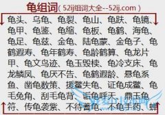 组词大全详解[龟组词]如:龟头、乌龟、龟裂、龟山、龟趺、龟镜、龟甲、龟鉴、龟缩、龟板、龟鹤、海龟、龟足、龟兹、金龟、陆龟蒙、金龟子、龟鹤遐寿、龟年鹤寿、龟龄...