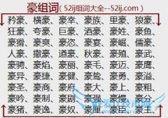 组词大全详解[豪组词]如:矜豪、横豪、豪幸、豪族、里豪、狼豪、狂豪、夸豪、巨豪、酒豪、豪姓、豪鱼、豪猾、豪爽、豪恣、豪宴、豪崛、儒豪、人豪、撒豪、遒豪、秋豪...