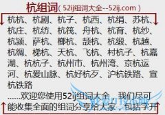 组词大全详解[杭组词]如:杭杭、杭剧、杭子、杭西、杭绢、苏杭、杭庄、杭纺、杭筏、舟杭、杭育、杭纱、杭颍、萨杭、榔杭、颉杭、杭缎、杭越、杭绸、梯杭、天杭、飞杭...