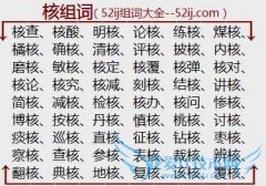 组词大全详解[核组词]如:核查、核酸、明核、论核、练核、煤核、橘核、确核、清核、评核、披核、内核、磨核、敏核、核定、核覆、核弹、核对、核论、核究、核减、刻核...