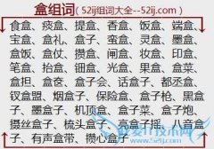 组词大全详解[盒组词]如:食盒、痰盒、提盒、香盒、饭盒、端盒、宝盒、盒礼、盒子、蛮盒、灵盒、墨盒、盒饭、盒仗、攒盒、闸盒、妆盒、印盒、笔盒、抬盒、钿盒、光盒...