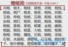 组词大全详解[棺组词]如:吊棺、棺木、棺榇、里棺、灵棺、棺钱、棺敛、棺尸、棺衾、棺束、棺殓、同棺、玉棺、梓棺、饰棺、瓦棺、殡棺、起棺、命棺、棺钉、棺架、棺具...