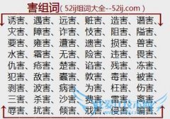 组词大全详解[害组词]如:诱害、遇害、远害、赃害、造害、谮害、灾害、障害、诈害、忮害、阻害、隘害、要害、雍害、遭害、遗害、损害、兽害、水害、霜害、无害、险害...