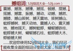 组词大全详解[撼组词]如:震撼、撼落、撼撞、撼摇、顿撼、摆撼、摇撼、撼雷、振撼、撼动、动撼、撼然、撼膝、撼山拔树、撼天震地、拔树撼山、蚍蜉撼树、撼天动地、震...