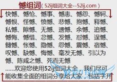 组词大全详解[憾组词]如:快憾、憾怆、憾事、憾恚、憾怨、憾轲、憾恨、怪憾、愤憾、悲憾、抱憾、释憾、私憾、隙憾、无憾、遗憾、余憾、追憾、憾悔、憾惜、忿憾、发憾...