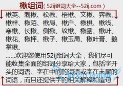 组词大全详解[楸组词]如:楸英、刺楸、松楸、梧楸、文楸、弈楸、楸梓、楸陌、楸局、楸户、楸棋、楸线、寒楸、长楸、侧楸、纹楸、楸函、楸叶、楸花、楸枰、楸子、楸玉...