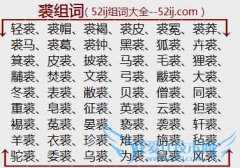 组词大全详解[裘组词]如:轻裘、裘帽、裘褐、裘皮、裘冕、裘莽、裘马、裘葛、裘钟、黑裘、狐裘、卉裘、箕裘、皮裘、披裘、马裘、毛裘、狸裘、黼裘、焚裘、文裘、弓裘...