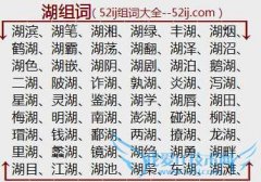 组词大全详解[湖组词]如:湖滨、湖笔、湖湘、湖绿、丰湖、湖烟、鹤湖、湖霸、湖荡、湖翻、湖泽、湖沼、湖色、湖嵌、湖阴、湖剧、湖泊、鹅湖、二湖、陂湖、诈湖、孰湖...