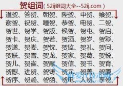 组词大全详解[贺组词]如:道贺、答贺、朝贺、陛贺、申贺、飨贺、谢贺、祝贺、踵贺、恭贺、电贺、二贺、贺世、贺学、贺版、候贺、贺屯、贺启、贺卡、贺庆、贺若、贺酒...