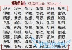 组词大全详解[狠组词]如:狠突、狠石、狠心、狠揍、刚狠、狠毒、狼狠、狡狠、骄狠、野狠、强狠、毒狠、猜狠、暴狠、愎狠、骜狠、傲狠、疏狠、贪狠、顽狠、狠命、发狠...