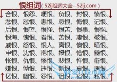 组词大全详解[恨组词]如:含恨、恨怨、哽恨、负恨、封恨、愤恨、忿恨、怼恨、恚恨、忌恨、悔恨、记恨、后恨、恨望、恨怪、恨苦、恨事、恨悒、恨海、愧恨、眷恨、苦恨...