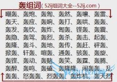 组词大全详解[轰组词]如:嘲轰、轰炮、轰訇、轰然、轰嚷、轰雷、轰天、轰应、轰响、轰打、轰哄、轰轰、轰发、轰饮、轰炸、訇轰、铿轰、轰震、轰隐、轰驾、轰烈、轰杀...