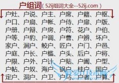 组词大全详解[户组词]如:户灶、户说、户主、户席、户籍、户枢、户口、户扃、户帐、户侍、户扉、户版、户册、户辩、户房、户符、花户、户伯、户等、户豹、户调、户曹...