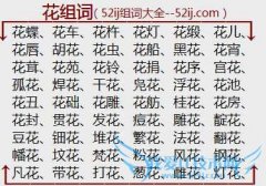 组词大全详解[花组词]如:花蝶、花车、花杵、花灯、花缎、花儿、花唇、胡花、花虫、花船、黑花、花宵、花茸、花苑、花铃、花捐、花序、宫花、孤花、焊花、干花、凫花...