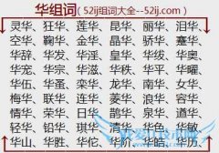 组词大全详解[华组词]如:灵华、狂华、莲华、昆华、丽华、泪华、空华、鞠华、金华、晶华、骄华、蹇华、华辞、华发、华淫、皇华、华绂、华奥、华宠、华宗、华滋、华秩...