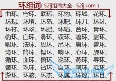 组词大全详解[环组词]如:曲环、穹环、联环、环钩、环城、花环、环琨、环堵、环岛、环靶、环刀、环封、环衬、环翠、环肥、环幅、合环、膏环、豹环、白环、鼻环、钗环...