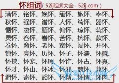 组词大全详解[怀组词]如:满怀、铭怀、娩怀、缅怀、旅怀、率怀、秋怀、强怀、潜怀、人怀、绮怀、器怀、惬怀、凄怀、腼怀、偏怀、琼怀、茕怀、灵怀、客怀、眷怀、苦怀...