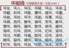 组词大全详解[坏组词]如:坏址、坏人、坏压、坏陵、坏山、坏坐、坏醋、积坏、坏账、隳坏、蛊坏、坏腹、坏钱、坏钞、坏字、坏胎、坏事、坏证、坏微、残坏、弊坏、崩坏...