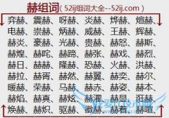 组词大全详解[赫组词]如:弈赫、震赫、呀赫、炎赫、烨赫、煊赫、电赫、崇赫、炳赫、威赫、王赫、辉赫、赫炎、豪赫、光赫、贵赫、赫怒、赫斯、赫煌、赫咤、赫蹄、赫张...