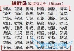 组词大全详解[锅组词]如:烟锅、背锅、揭锅、回锅、黑锅、锅盔、锅伙、锅底、锅焦、锅户、锅门、锅屋、汽锅、气锅、罗锅、起锅、滤锅、锅魁、锅庄、锅饼、锅灶、锅帘...