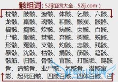 组词大全详解[骸组词]如:枕骸、肢骸、遗骸、体骸、乞骸、六骸、龙骸、羸骸、魂骸、积骸、骸炭、骸骼、槁骸、痴骸、炊骸、病骸、束骸、百骸、尸骸、躯骸、焚骸、弃骸...