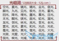 组词大全详解[光组词]如:空光、景光、镜光、精光、金光、借光、脚光、九光、见光、极光、吉光、霍光、回光、降光、埋光、露光、慕光、目光、末光、瞑光、镁光、面光...