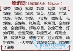 组词大全详解[煌组词]如:煌荣、煌灼、辉煌、敦煌、炳煌、荧煌、煌耀、煌扈、煌熠、煌荧、赫煌、炜煌、炫煌、莹煌、炖煌、卫立煌、敦煌市、亮煌煌、金煌煌、张煌言、...