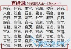 组词大全详解[官组词]如:候官、宦官、果官、官漏、稷官、还官、火官、过官、昏官、畿官、羁官、官费、贵官、官牒、副官、赴官、府官、负官、服官、官伯、官兴、官道...
