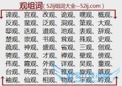组词大全详解[观组词]如:谛观、宫观、改观、诡观、嘿观、概观、反观、蜚观、泛观、洞观、第观、大观、邸观、迭观、道观、池观、表观、辞观、楚观、崇观、书观、耸观...