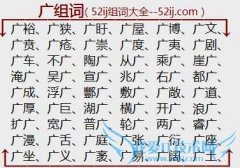 组词大全详解[广组词]如:广裕、广狭、广盱、广屋、广博、广文、广贲、广疮、广崇、广度、广夷、广剧、广车、不广、陶广、从广、乘广、崖广、淹广、吴广、宣广、兆广...