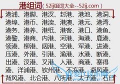 组词大全详解[港组词]如:港浦、港脚、港汊、封港、港池、港洞、港埠、港币、港渎、港澳、港元、港湾、港务、港养、港纸、港客、港口、港鱼、港警、港商、内港、河港...