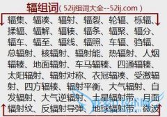 组词大全详解[辐组词]如:辐集、辐凑、辐射、辐裂、轮辐、栎辐、揉辐、辐解、辐辏、辐条、辐聚、辐分、辐车、辐至、辐线、辐照、车辐、驺辐、总辐射、核辐射、辐射能...