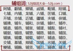 组词大全详解[辅组词]如:阿辅、颧辅、卿辅、戚辅、毗辅、陪辅、七辅、内辅、龙辅、六辅、匡辅、口辅、开辅、京辅、近辅、疆辅、夹辅、侠辅、辅拂、辅车、辅和、扶辅...
