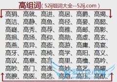 组词大全详解[高组词]如:高狷、高就、高进、高居、高爵、高揭、高洁、高静、高鱼、高径、高晏、高懿、高嶷、高秀、高荐、高雅、高邮、高影、高挹、高扬、高仰、高勋...
