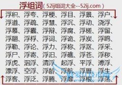 组词大全详解[浮组词]如:浮积、浮夸、浮梗、浮目、浮景、浮户、浮道、浮疏、浮慧、浮沉、浮动、浇浮、浮慕、浮蠹、浮辩、浮腐、浮槎、浮留、浮翮、浮桴、浮词、浮诡...