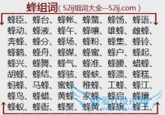 组词大全详解[蜂组词]如:蜂臣、蜂台、蜂帐、蜂螫、蜂饧、蜂语、蜂动、蜂液、蜂午、蜂嚷、雄蜂、雌蜂、奔蜂、蜂分、蜂场、蜂粉、蜂集、蜂铃、蜂鹤、蜂舟、蜂媒、蜂蜜...