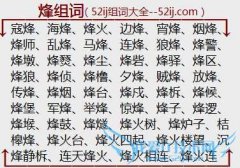 组词大全详解[烽组词]如:寇烽、海烽、烽火、边烽、宵烽、烟烽、烽师、乱烽、马烽、连烽、狼烽、烽警、烽墩、烽燹、烽尘、烽砦、烽驿、烽区、烽狼、烽侦、烽橹、夕烽...